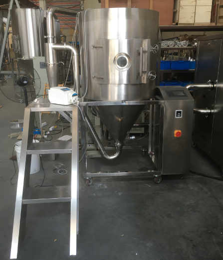 制備出真正的圓球狀實(shí)心微球顆粒,首選實(shí)驗(yàn)可用上海歐蒙生產(chǎn)的OM-5000型實(shí)驗(yàn)型噴霧干燥機(jī)。實(shí)驗(yàn)型噴霧干燥機(jī)系統(tǒng)工作流程如圖所示。該系統(tǒng)的工作原理是空氣經(jīng)過電加熱以后,再通過高溫過濾器,以保證進(jìn)人塔體的空氣是潔凈熱空氣,然后通過干燥室頂部的熱風(fēng)分配器,通過熱風(fēng)分配器的熱空氣均勻地進(jìn)人干燥室內(nèi)并呈螺旋狀轉(zhuǎn)動(dòng),同時(shí)將料液送至離心噴霧頭。鋁礬土料漿被高速旋轉(zhuǎn)的噴霧頭噴射成球形霧滴,水分迅速在霧滴表面蒸發(fā),在極短的時(shí)間內(nèi),霧滴干燥收縮成為微球坯體。較粗的微球顆粒由干燥室底部的收集桶收集,較細(xì)的微球顆粒通過設(shè)在錐底的管道流到旋風(fēng)分離器,并由套在旋風(fēng)分離器底部的收集桶收集。廢氣通過除塵器排出。