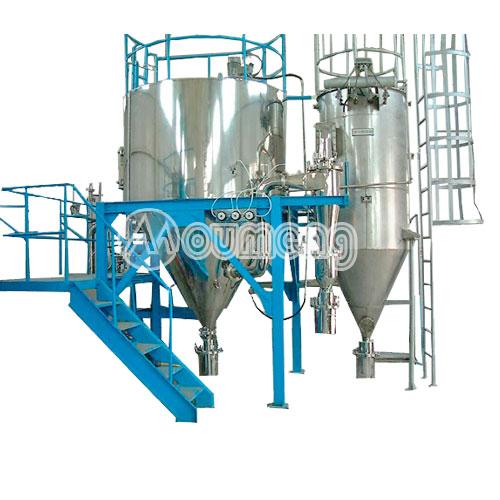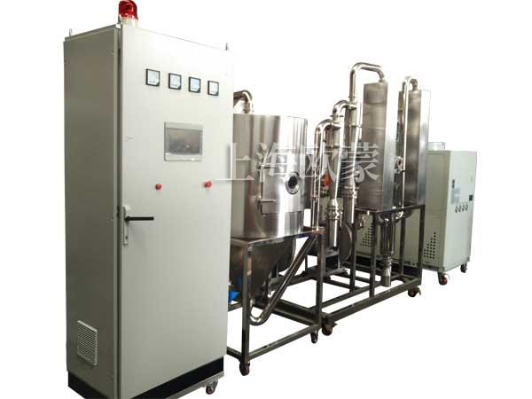 有機溶劑噴霧干燥機是系統(tǒng)組成一個封閉的循環(huán)回路,載熱體可以循環(huán)使用也叫閉式循環(huán)噴霧干燥機。對于揮發(fā)物是有機化學(xué)溶劑、有毒或逸出后能對人身、環(huán)境造成危害物料的干燥,料液中含有的有機溶劑或產(chǎn) 品是易氧化、易燃、易爆的物料,一般情況下,需用這種流程的物料都是不能接觸氧氣的,所以載熱體大多使用惰性氣體(如氮氣、二氧化碳等);此種方式又稱惰 性氣體干燥。從干燥器排出的尾氣,經(jīng)過氣固分離后還要經(jīng)過冷凝器回收溶劑或去除濕分,再經(jīng)加熱器升溫后進入干燥器進行循環(huán)使用。通過載熱體和閉式循環(huán)方 式,我們可以有效的避免物質(zhì)干燥遭遇高溫危險、防止噴霧干燥過程中與氧氣接觸,粉塵90%以上回收等。